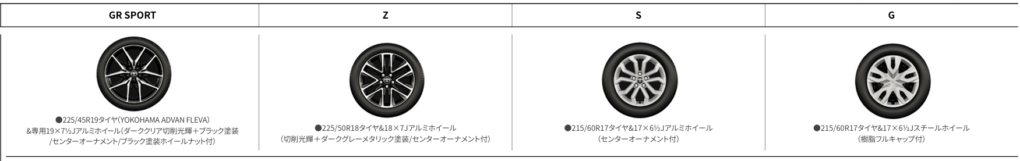 | 19インチ | 225/45R19 | 純正サイズ(GR SPORT) |